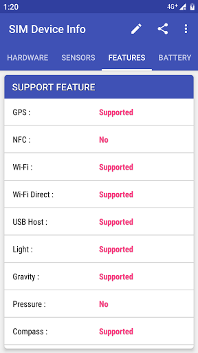 Displaying available sensors and supported features on your device.