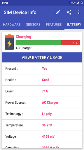 Displaying battery status, technology and capacity on your device.