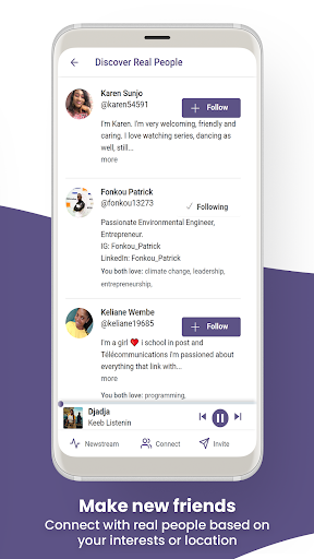 Connections on Keeb are not limited only to your family, friends or people you know. Using the “Discover Real People” feature and “Keeb Communities”, it will become easier for you to meet other people who share your interests, connect, learn, engage and grow alongside people who are fund of the same things like you.