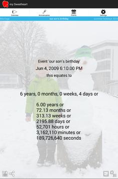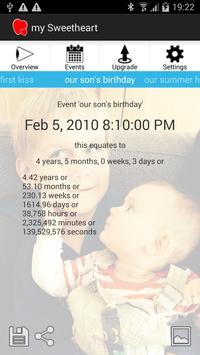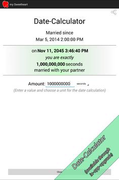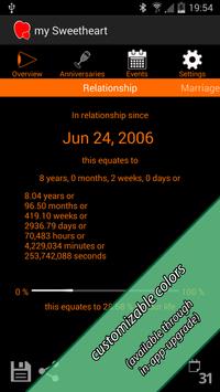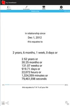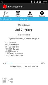 With 'My Sweetheart' you can see exactly for how long you have been dating your love or how long you are engaged or married and this exactly to the second.