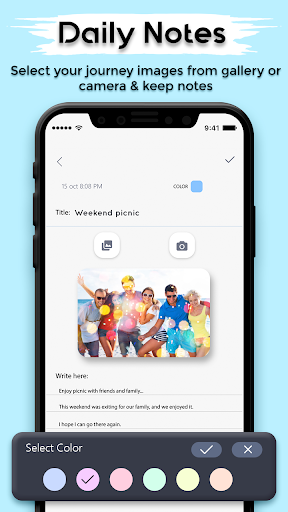* Add photos from your gallery or add a mood emoji to each entry and express your emotions easily!