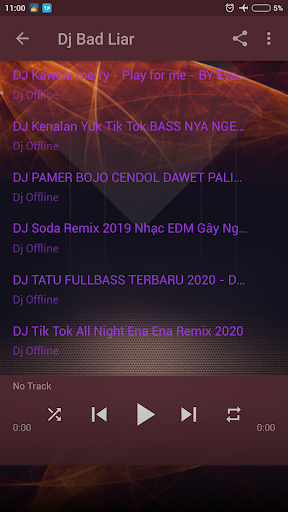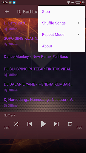 terbaru dari musik dj saat ini, kumpulan musik dj offline dari berbagai lagu terbaik dengan suara yang sangat jelas dan full bass. didukung aplikasi yang sangat kecil sehingga memudahkan kalian untuk mendownload tanpa memakan banyak ruang memori pada handphon kalian, ditambah lagi dengan fitur yang sangat sederhana shingga mudah untuk dioperasikan dan dinikmati semua kalangan.