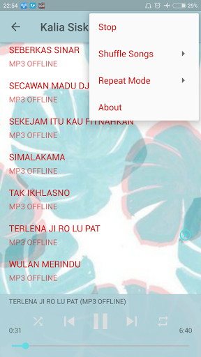 이 노래의 컬렉션은 좋은 음질을 가지고 있으며 맑아서 듣는 것이 좋습니다. 이 응용 프로그램에는 많은 노래 선택이 있습니다. 맛에 따라 회전 할 수 있도록 인기있는 선택 곡이 있습니다. Kalia Siska는이 음악 응용 프로그램을 다운로드합니다.
