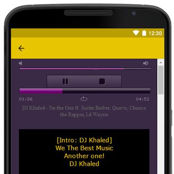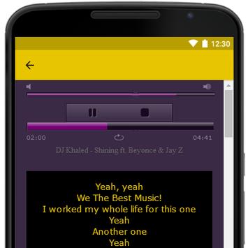 This application will answer all of your questions are. This application contains top lyrics of DJ Khaled. You can use this application very easily, because we created this app with the look simple and attractive.