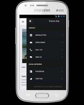 The enjoya app was built as an android app comes as a template for sale in order to let IT companies to have less cost of developing any company's app for android version.