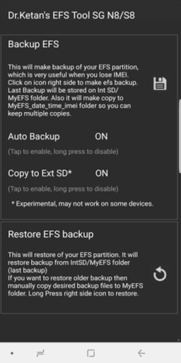 It is small utility to backup/Restore EFS for Smamsung galaxy NOTE 8,S8 and S8