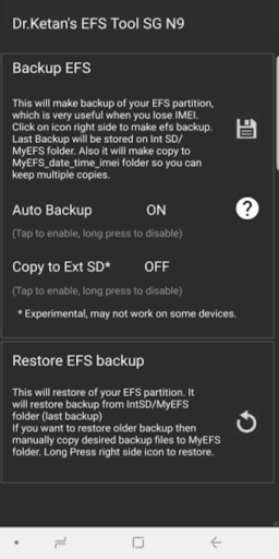 It is small utility to backup/Restore EFS for Smamsung galaxy NOTE 9