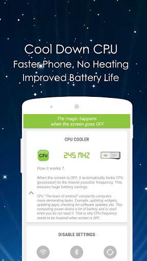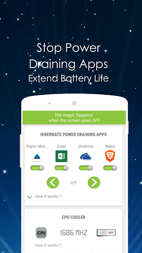 Powerful Battery Saver & CPU Cooler: Doze app cools down the CPU, release memory by shutting down the background apps & processes. Which gives new a new lease of life to CPU, Which in result resolve the heating problem of your device and boost up the speed of your device