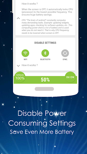 - Disables Battery Consuming Settings