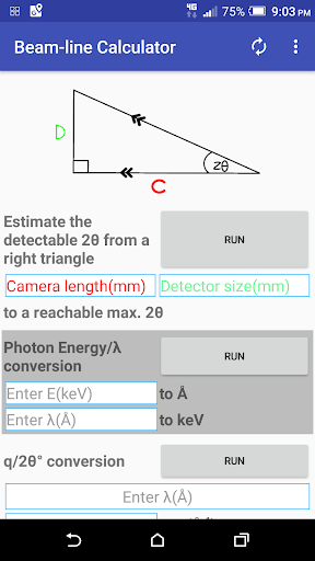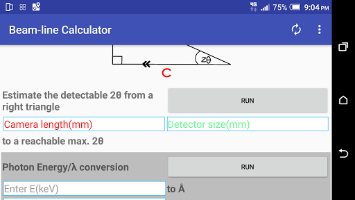 A very useful app that could be used to calculate: Reachable diffraction angle for a given detector size and sample to detector distance(note: