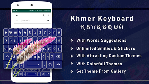 The new Khmer English Keyboard is the new way to use your default mobile keyboard with multiple colors, beautiful backgrounds, emoji keyboard for mobile and much more. This is best keyboard theme that likely compatible with android keyboard and best app to customize keyboard with new look. Download latest colorful theme keyboard with keyboard wallpaper to give change your phone look into a new way.