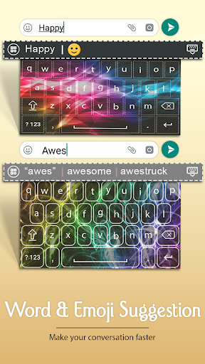 A beautiful Electric Color Keyboard with amazing features is designed for those who like sending message with GIF, emoticon and emoji. It is a MUST HAVE free android stylish emoji keyboard.