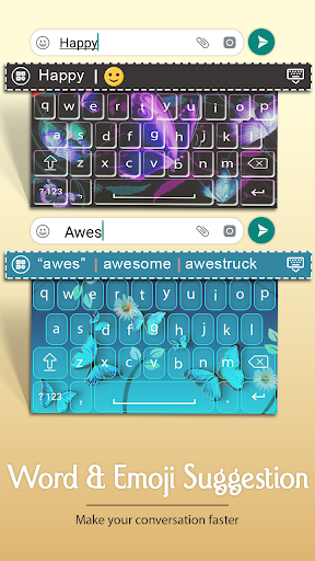A beautiful Neon Butterfly Keyboard with amazing features is designed for those who like sending message with GIF, emoticon and emoji. It is a MUST HAVE free android stylish emoji keyboard.