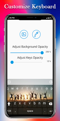 - You can also set your favorite photo from your phone in the keyboard theme, and you can also adjust theme or keyboard keys opacity.