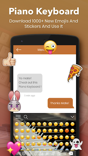 Piano Keyboard, is a powerful emoji keyboard with amazing features designed for those who like sending messages with emoticon, stickers and emoji.