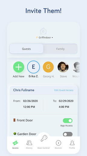 Use the app to easily invite your family, friends, and guests. You can set up a date and time as you wish. No need to share your pin code anymore.