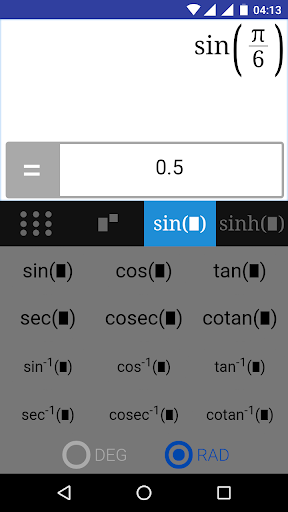 - Trigonometric functions: sine, cosine, tangent, arc sine, arc cosine and arc tangent;