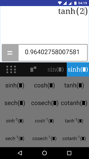 -Hyperbolic functions: hyperbolic sine, hyperbolic cosine and hyperbolic tangent.