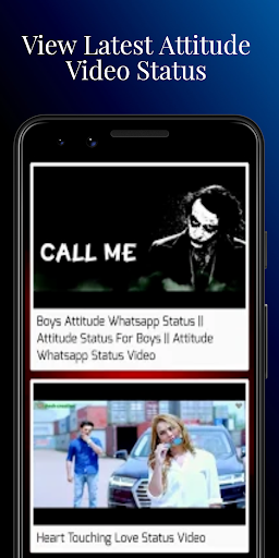 This Application has some amazing & beautiful attitude video status, that everyone like. The Videos that represents & show your own attitude to world. If you are finding status video of attitude that represent you then your search is ends here.
