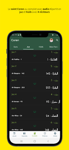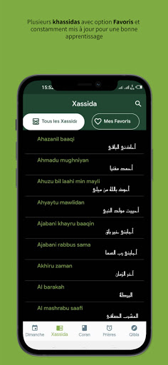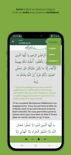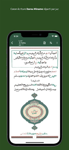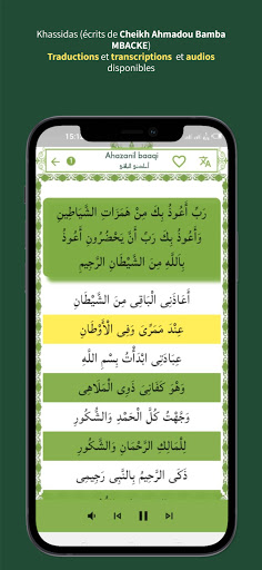 L'application dispose plus de 3 langues de traduction du coran et des khassidas et une transcription.
