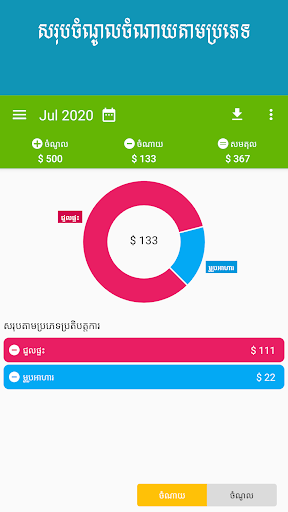 This app is for recording your daily spending and earning. If you need to know your financial status, where the money goes and comes from. The app is in Khmer Language
