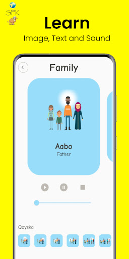 This app is made by Somali For Kids to increase your vocabulary in Somali language. It uses simple images, English and Somali text and audio so you can learn how to pronounce the word. Categories included are: alphabet, numbers, shapes, vegetables and fruits, colours, objects, time, and family. You also have a story section that enables you to see the latest Somali video with English or Somali subtitles as well as proverbs. We hope you will enjoy learning with us. We do our very best to represent the Somali language. We do realize there may be some differences based on the region however as we are from Somaliland we have used this region as our reference.
