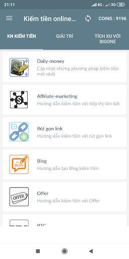 - App cung cấp cho các bạn những kiến thức cơ bản về kiếm tiền online. Kinh doanh làm giàu.