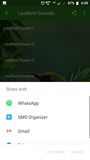 Leaf bird Sounds is an entertainment application for all users which helps to entertain and get a calm and quiet feeling. This Leaf bird Sounds app includes more than 10 sounds. With this sounds for the users can easy entertain them self with easy navigation.
