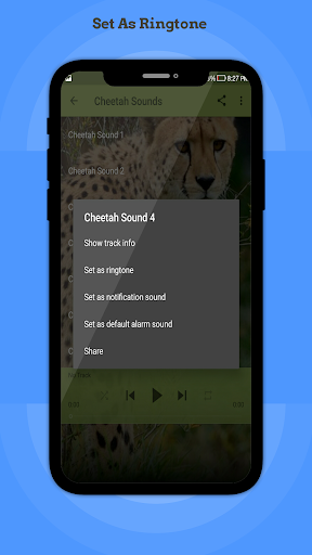This application containing the best collection of Cheetah Sounds for Android Devices. Sounds have been selected very carefully to be a good and fun user experience, we hope you will enjoy using the app and listening to Cheetah Sounds.