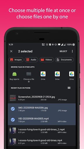 A file sharing app which can help you transfer files from your mobile device to a Windows 10 device without installing anything on you Windows 10 system.