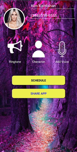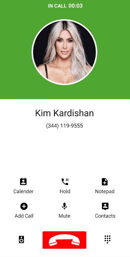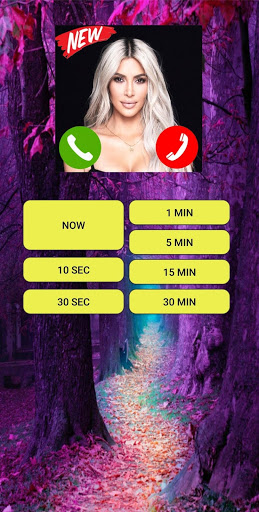 after the interval you set. a simulator screen calls from Kim Kardashian will be switched on with the ringtone and vibration. you need to do is pick up or shutdown.