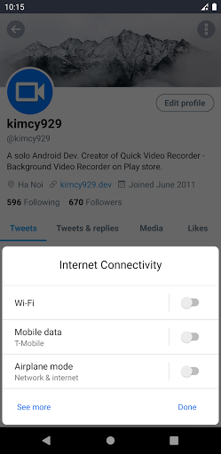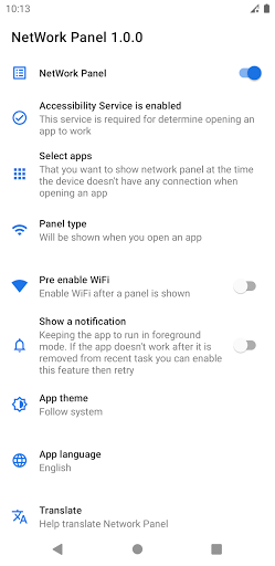 A simple tool spends on Android 10 and higher. It helps you enable network (WiFi and Mobile data) faster without pulling the notification panel if your device didn't have any connection before. This helps you use the device easier with one hand.