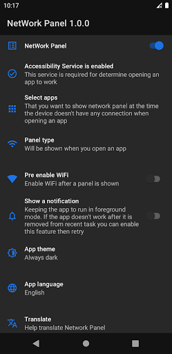 The app uses Accessibility service to determine when an app in the "Select apps" list is opened. NetWork Panel does not collect any other information from the service.