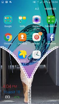 Pull down the hook to unlock screen with amazing unzip effect.