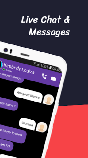 this application to simulation a fake chat messenger with a fake call and video call, we add an option to start a live chat with your celebrity Kim Loaiza, to look a real chat messenger live. all this just to prank your friends or your family to make a fake chat with your favorite singer Kimberly Loaiza.