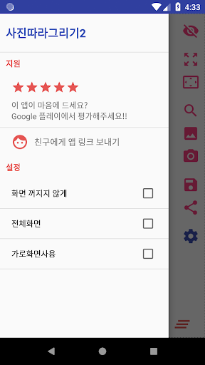- 갤러리에서 사진을 선택해서 배경화면으로 두고 스케치하고 색을 칠할 수 있습니다.