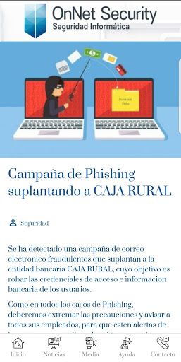 actividad. Hemos abierto un nuevo departamento dentro de nuestra empresa de Seguridad Informática, para el cual hemos creado esta APP para así conseguir llegar a nuestros clientes, de una forma amena y cercana para mantenerlos informados sobre el estado y seguridad de sus instalaciones informáticas. Todo ello, unido a la continua formación que reciben nuestros técnicos, así como nuestra prioridad por la apuesta en tecnología de futuro, cualifica a OnNet Center como empresa