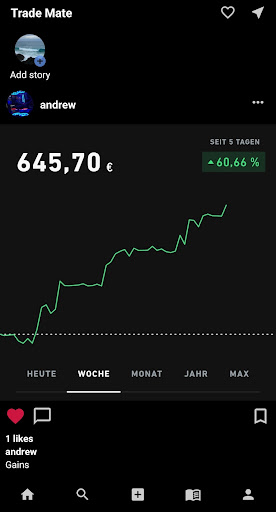 Trade Mate is a new Social Media platform, that offers you a very immersive experience to connect yourself in the world of stocks and investing. Meet new friends, get new information, create your own dream depot, compare it to friends, post stories, chat with people and post images!