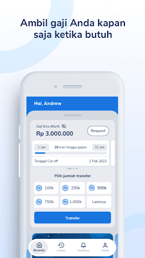 Kini memudahkan kamu dalam mengakses uang penghasilan sebelum tanggal gajian.