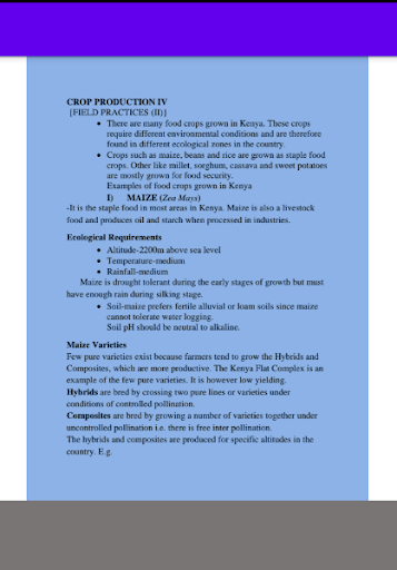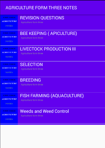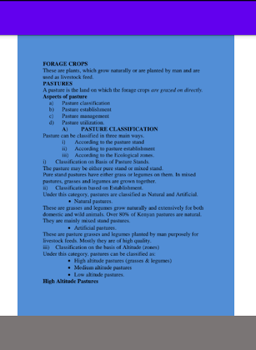 The application contains the following topics -Bee keeping -Livestock health and production III -Breeding -Fish Farming -Weeds -Crop production IV -Forage crops