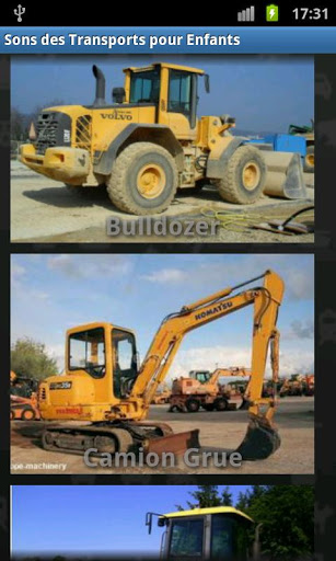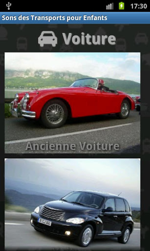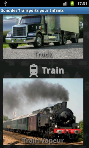 Let your children discover the sound of vehiclesPlay with your children with this cool application in your phone.Let your children discover the transports and learn through images sounds and words This application allows children to discover transports through very beautiful pictures and great sounds.Watch them wake up, laugh, wonder, be afraid to listen to the sounds of his favorite transports. An excellent application for young children.Functions of the application: Press one button to play the corresponding sound Play a random sound by turning the phone as a Moo Box Hold down a button to set the sound as ringtone or SMS notification Add the widget to play a random sound from your phone Home Included in this application: A function of turning the phone to play a random sound works like a quot;moo boxquot;.Option menu Animations to follow the playing sound.A contextual menu for sound.Background music to launch the application. A Widget to launch the application or play a random sound from the home screen.Near 50 different sounds. An organization of sounds by section.