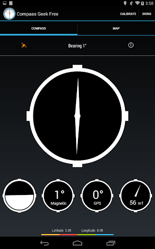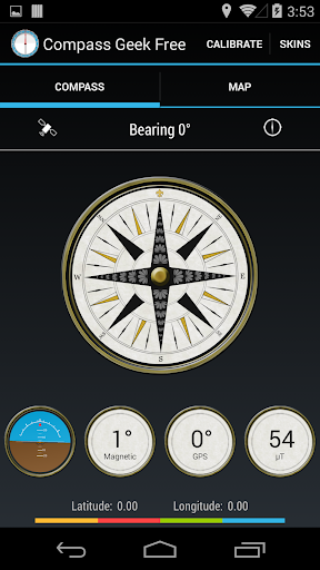 Please note that Compass Geek requires both a magnetic sensor and an acceleration sensor. If you phone or tablet does not have a magnetic sensor or acceleration sensor, the application will not function correctly and you will be sad.