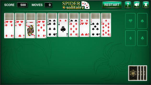 Spider Solitaire is played with two decks of cards. Depending on the difficulty level, the decks consist of either one, two, or four different suits.The cards are arranged in ten columns. The top card in each column is face up, the rest are face down. The remaining cards are piled in the lower-right corner of the table.To win, you must remove all the cards from the table by building columns organized in descending order, from king to ace.