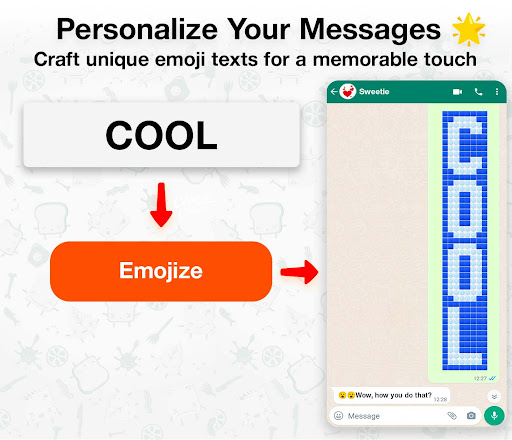 - Introducing a new feature: Text to Emoji! Transform your words into visually captivating emoji-based letterforms to craft distinctive and memorable messages. Unleash your creativity and make your messages stand out with this innovative functionality.