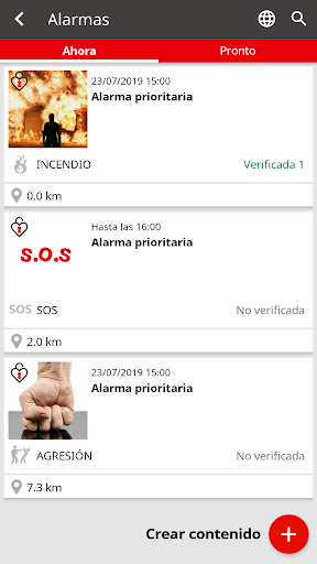 Ante situaciones de riesgo se podrán activar alarmas como víctima o testigo, enviando un SOS geoposicionado con audio, fotos, etc. alertando así a los usuarios de la plataforma que se encuentren cerca del lugar del suceso, consiguiendo con ello: disuadir al presunto agresor, ayudar a la víctima o aportar pruebas en caso necesario.