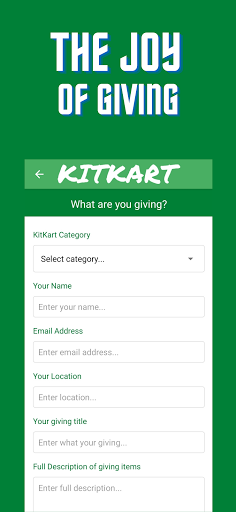 The joy of KITKART and giving is our source! Now you can list items that you want to give away at no cost. A radical change can always heal the planet! Share your giving today!