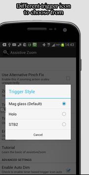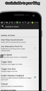 Assistive Zoom displays a small zoom button at the edge of screen. Just hold on it and move up/down to zoom in/out at precise scale according to the movement you applied. It's that easy !