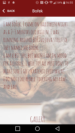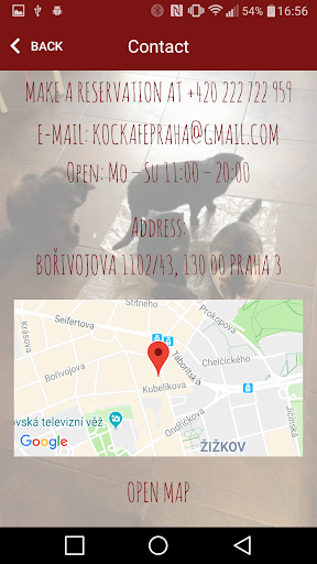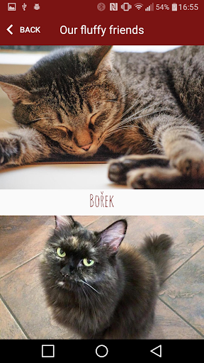 With this app you can discover the first cat café in Prague. Read information, see photos and familiarize with the cats! Share your experience from the cat café with your friends.