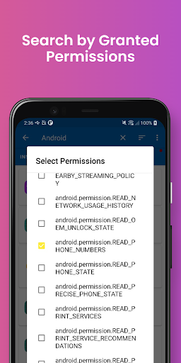You can search apps that granted permissions you choose.