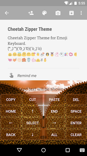 Cheetah Zipper Skin for KK Emoji,Emoticons and Smileys Keyboard.Please download KK Emoji Keyboard from http://goo.gl/IDdDta.